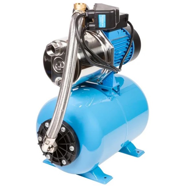 Насосная станция с баком на 24 литра, а также автоматическим включением и выключением по давлению воды. Производительность насоса 70 литров в минуту (или 4,2 м3 в час), максимальный напор составляет 50 метров. Корпус насоса из нержавеющей стали, гидроаккумулятор из углеродистой стали. Насосная станция предназначена для подачи чистой воды из колодцев, скважин, открытых водоемов, резервуаров, а так же для повышения давления в магистральных сетях. Позволяет организовать автоматизированное водоснабжение, или же создать комфортные условия использования водоснабжения при пониженном давлении в трубопроводе.