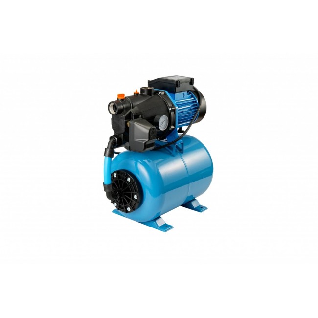 Насосная станция с баком на 24 литра, а также автоматическим включением и выключением по давлению воды. Производительность насоса 70 литров в минуту (или 4,2 м3 в час), максимальный напор составляет 50 метров. Корпус насоса из пластика, гидроаккумулятор из углеродистой стали. Насосная станция предназначена для подачи чистой воды из колодцев, скважин, открытых водоемов, резервуаров, а так же для повышения давления в магистральных сетях. Позволяет организовать автоматизированное водоснабжение, или же создать комфортные условия использования водоснабжения при пониженном давлении в трубопроводе.