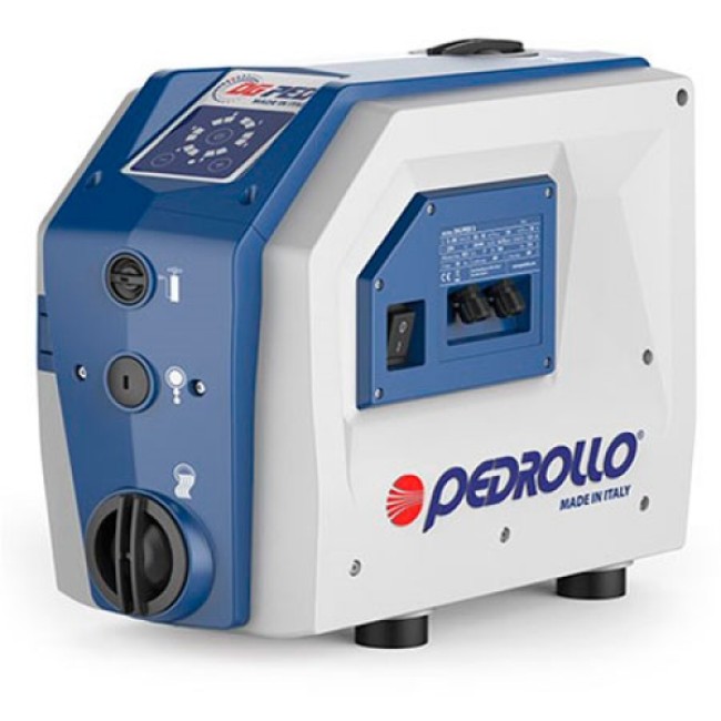 DG PED - это автоматическая установка повышения давления с инвертором, включающая в себя: высокоэффективный самовсасывающий насос;расширительный бак;датчики давления и расхода;обратный клапан.DG PED - это компактная, автономная, бесшумная и высокоэффективная насосная установка. Усовершенствованный инвертор с электронным управлением, являющийся центральным элементом системы, логичным образом: