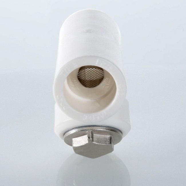 Количество в упаковке: 5шт. Фильтр с корпусом из полипропилена и сетчатым элементом из нержавеющей стали марки AISI 304, предназначенный для очистки транспортируемой жидкости от нерастворимых примесей размером от 300 мкм. Используется в составе систем из полипропиленовых труб c рабочей температурой до 90 °С и при номинальном давлении (PN) 25 бар. Пробка и закладная деталь фильтра выполнены из латуни марки CW617N, никелированы, уплотнительная прокладка – из синтетического каучука EPDM. Монтаж фильтра производится методом раструбной сварки. Присоединения – внутреннее/внутреннее.
