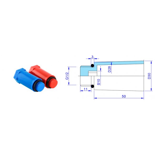 Комплект 1/2" длинных полипропиленовых пробок красная+синяя VTp.792.M.04 Valtec