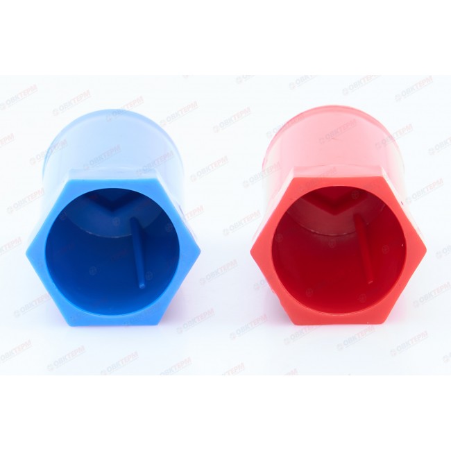 Комплект длинных полипропиленовых пробок (синяя и красная), предназначенных для герметичного перекрытия трубопровода в неиспользуемых патрубках фитингов или арматуры с внутренней резьбой. Наиболее часто монтажные полипропиленовые пробки используются при тестовой опрессовке гидравлических систем и в качестве временных заглушек, устанавливаемых на период проведения общестроительных работ.