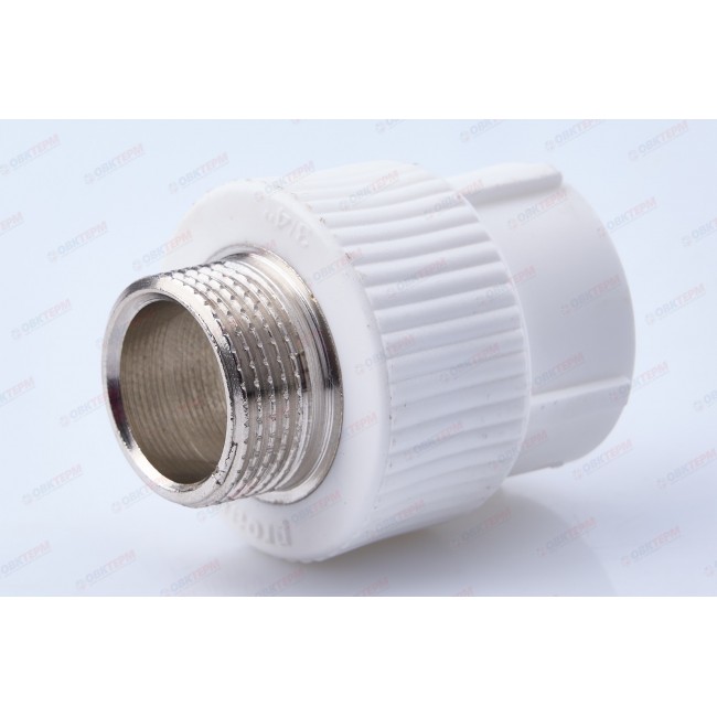 Количество в коробке: 100шт. Количество в упаковке: 10шт. Полипропиленовая комбинированная муфта с наружной резьбой Pro Aqua под ключ предназначена для монтажа труб из разного материала: полимерных и металлических. На внешней поверхности у муфты находятся выступы, с помощью которых ее легко можно закрутить гаечным ключом.