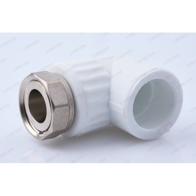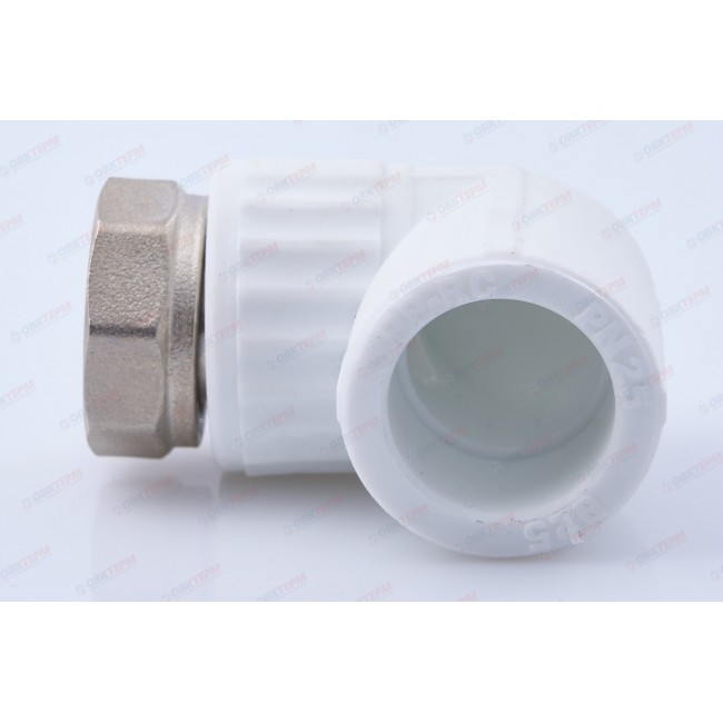 Муфта 25*3/4" с накидной гайкой угловая, белая Valfex