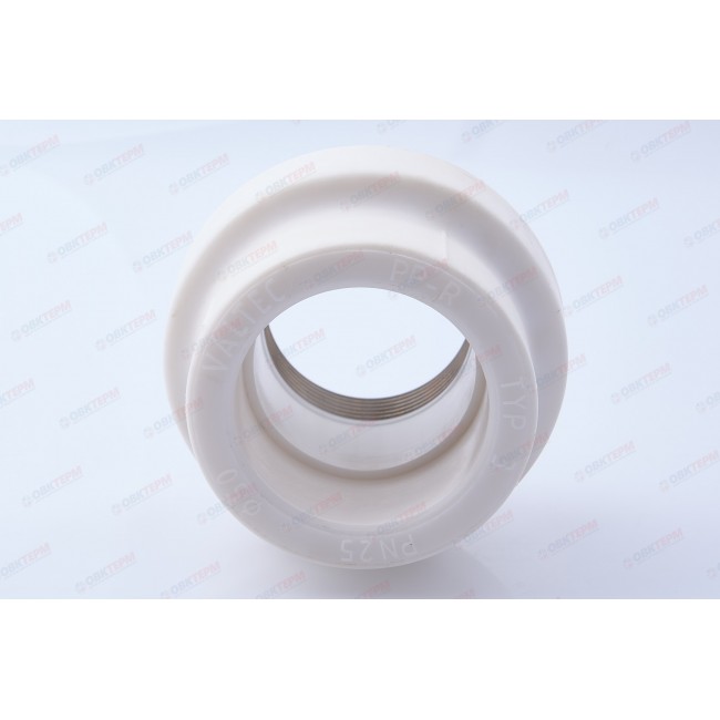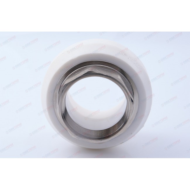 Прямой полипропиленовый фитинг для соединения полипропиленовой трубы и компонента инженерной системы с резьбовым подключением. Резьба фитинга – внутренняя трубная по ГОСТу 6357. Предусмотрен участок корпуса шестигранной формы, под гаечный или трубный рычажный ключ.