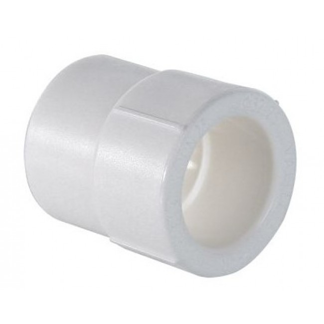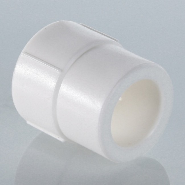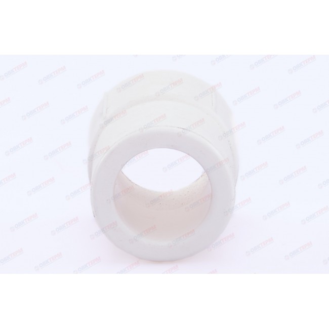 Фитинг для соединения деталей полипропиленового трубопровода методом раструбной сварки с переходом на другой диаметр. Предназначен для случаев, когда переход с одного диаметра трубопровода на другой осуществляется через фитинг, например, полипропиленовый угольник или тройник. Свариваемые поверхности – внутренняя/наружная.