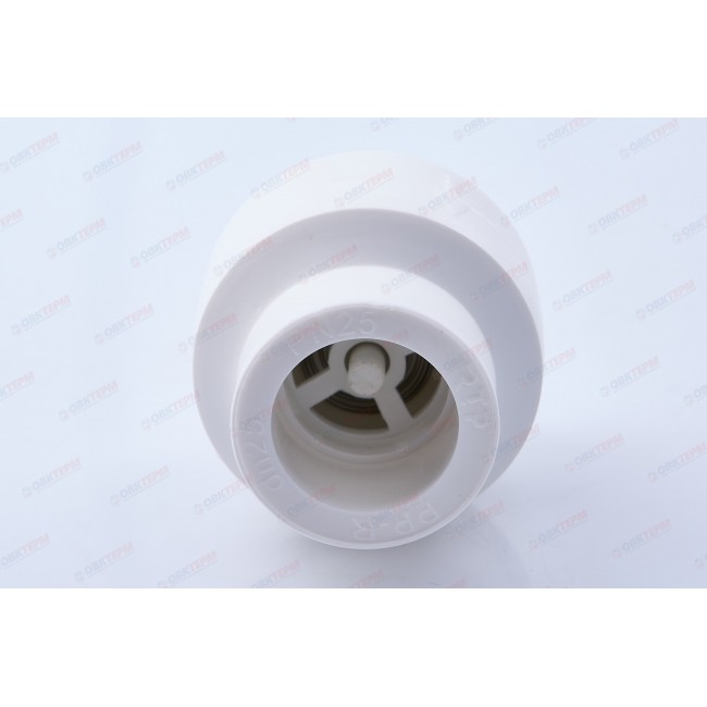 Количество в коробке: 60шт. Количество в упаковке: 20шт. Обратный клапан предназначен для использования в системах водоснабжения и отопления. Методом раструбной сварки осуществляется пайка клапана с трубами ППР диаметром 25мм