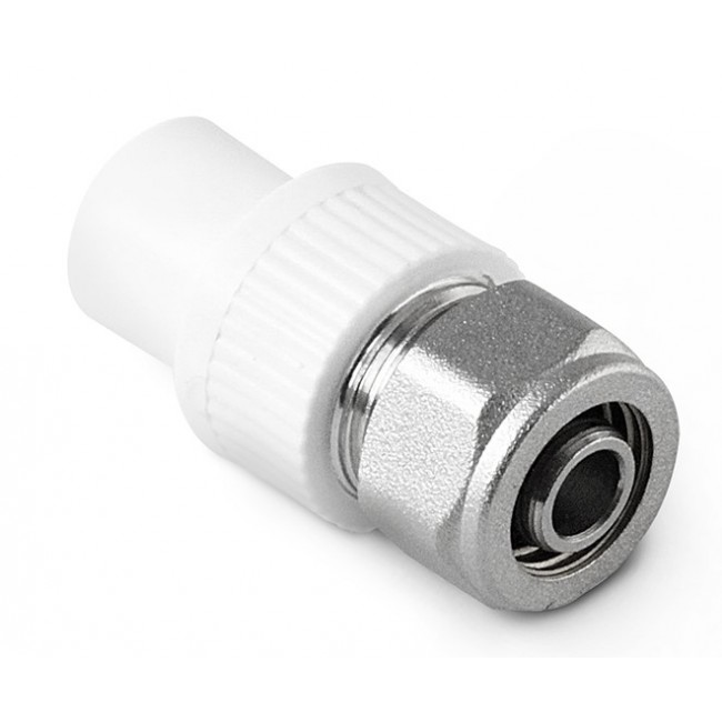 Количество в коробке: 160шт. Количество в упаковке: 4шт. Данный переходник позволяет соединить трубы из рандомсополимера полипропилена с трубами из PE-RT, PEX, металлопластиковыми трубами. С одной стороны переходник имеет полипропиленовый хвостовик, который может быть вварен в раструб фитинга PP-R с помощью стандартного сварочного аппарата. С другой стороны адаптер представлят собойкомпрессионное соединение, которое соединяется с металлопластиковой трубой или трубой из сшитого полиэтилена механическим способ с помощью гаечного ключа.