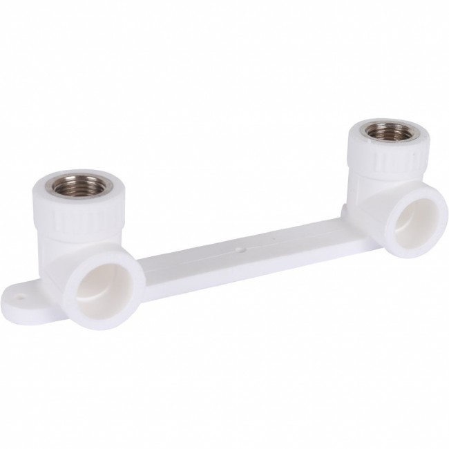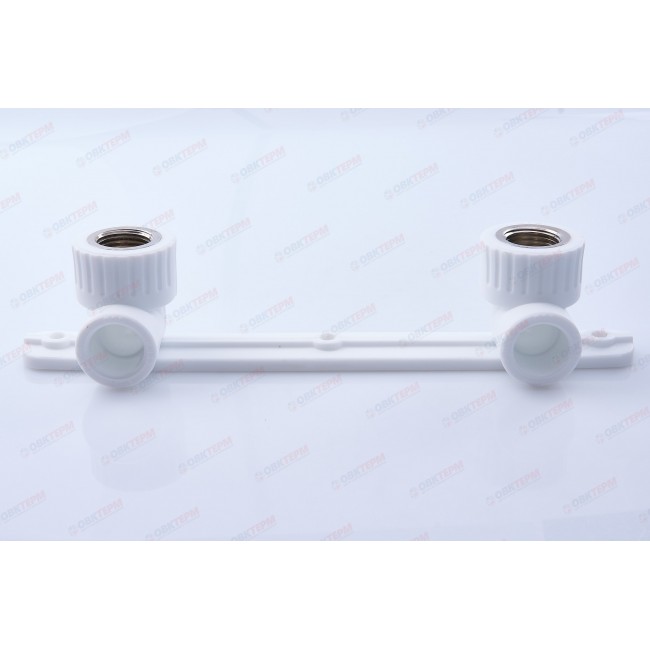 Количество в коробке: 24шт. Количество в упаковке: 8шт. Угольник PP-R Ростурпласт комбинированный двойной с внутренней резьбой - используется при монтаже полипропиленовых труб PP-R во многом облегчает монтаж при выполнении различного рода задач и предназначен для изменения направление водомагистрали под большим углом (к примеру, для обвода различных препятствий), а так же используется для присоединения к основной трубе различного сантехнического оборудования. Одно из основных преимуществ-это возможность жесткого крепления к стене и любой другой поверхности. Угольник PP-R двойной комбинированный с креплением изготовлен в соответствии с ГОСТ 32415-2013 и может выдерживать давление до 25 бар. Закладные детали выполнены из высококачественной латуни типа ЛС-59-2 с пониженным содержанием свинца.