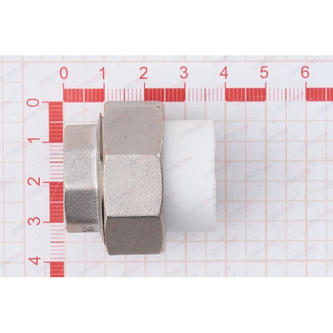 Количество в коробке: 200шт. Количество в упаковке: 10шт. Полипропиленовый фитинг для создания разъемного, с использованием накидной гайки, соединения полипропиленового трубопровода с трубопроводом или арматурой из других материалов. Уплотнительное кольцо выполнено из синтетического каучука EPDM. Резьба фитинга – внутренняя трубная по ГОСТу 6357.