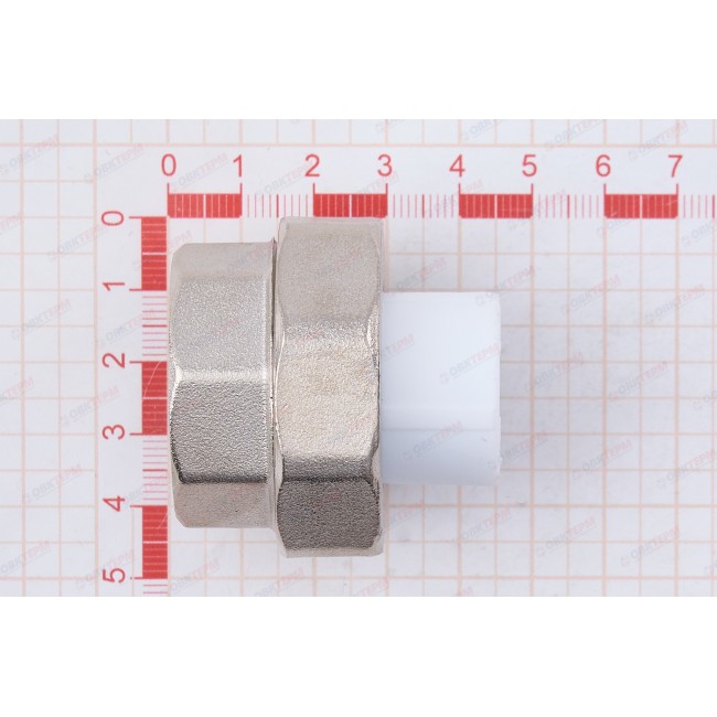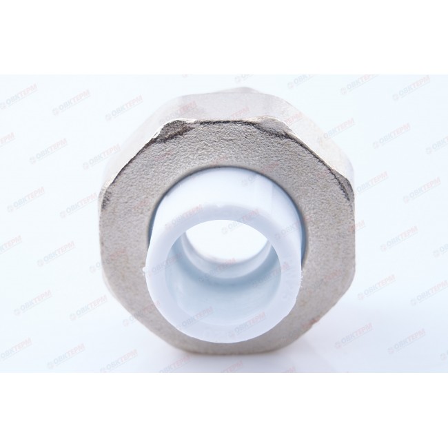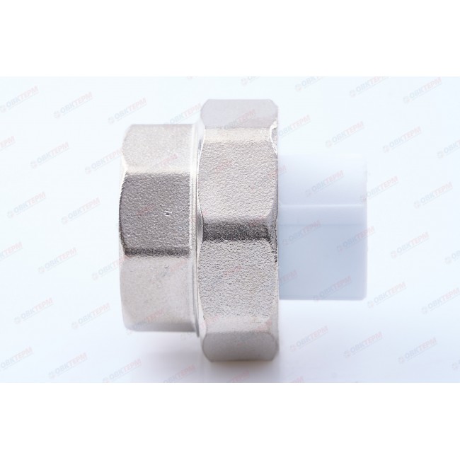 Количество в коробке: 100шт. Количество в упаковке: 25шт. Представляет собой разъемное соединение между металлической и пластиковой трубой. Изготовлены: по ТУ 2248-001-21088915-2015 «Трубы напорные и соединительные детали к ним из полипропилена PP-R ТМ VALFEX» разработанные в соответствии с требованиями ГОСТ 32415-2013.