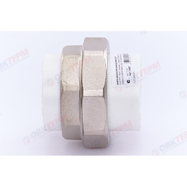 Количество в коробке: 50шт. Количество в упаковке: 10шт. Разъемное соединение диаметром 32 мм применяется при монтаже систем отопления и водоснабжения и предназначена для быстрого и удобного монтажа и демонтажа полипропиленовых труб PP-R, а также в случае необходимости прокладки временных обводных трубопроводов. Муфта изготовлена в соответствии с ГОСТ 32415-2013 и может выдерживать давление до 25 бар. Закладные детали выполнены из высококачественной латуни типа ЛС-59-2 с пониженным содержанием свинца.