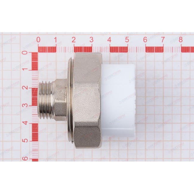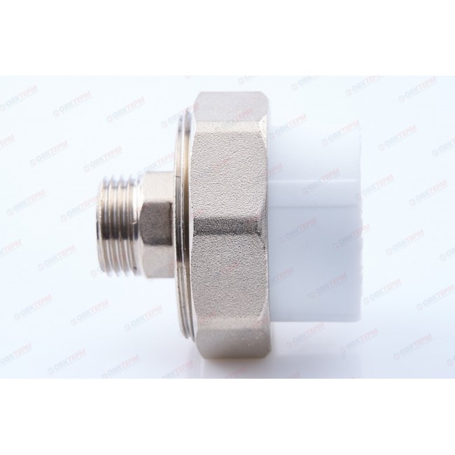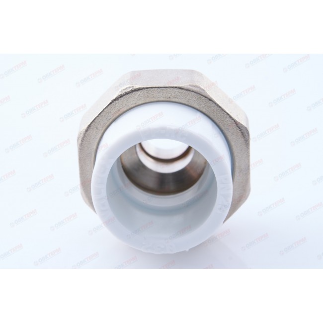 Количество в коробке: 80шт. Количество в упаковке: 20шт. Представляет собой разъемное соединение между металлической и пластиковой трубой. Изготовлены: по ТУ 2248-001-21088915-2015 «Трубы напорные и соединительные детали к ним из полипропилена PP-R ТМ VALFEX» разработанные в соответствии с требованиями ГОСТ 32415-2013.