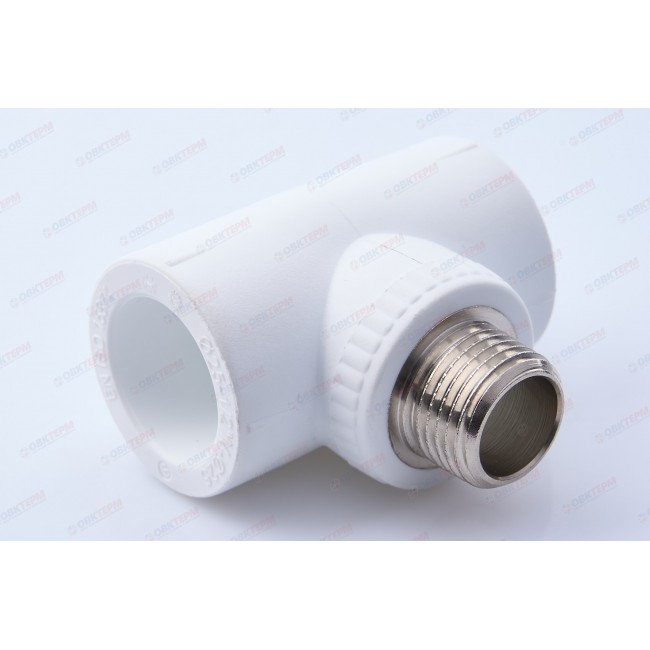 Тройник 25 * 1/2" * 25 с муфтой наружней резьбой белый S.A.V.