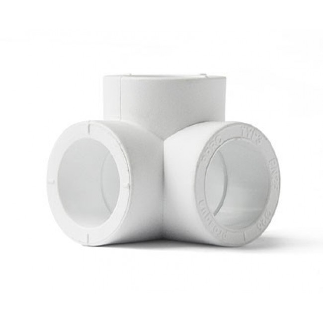 Полипропиленовый фитинг - тройник для разветвления полипропиленового трубопровода в двух плоскостях (тройник двухплоскостной). Монтаж производится методом раструбной сварки. Свариваемые поверхности - внутренние.