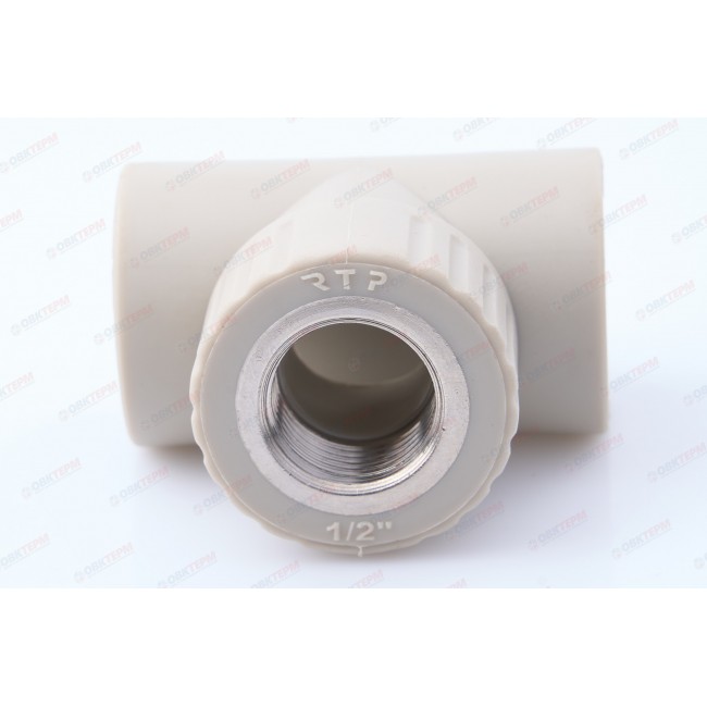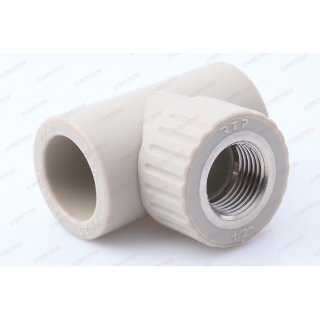 Тройник 25*1/2"*25 с муфтой в серый RTP