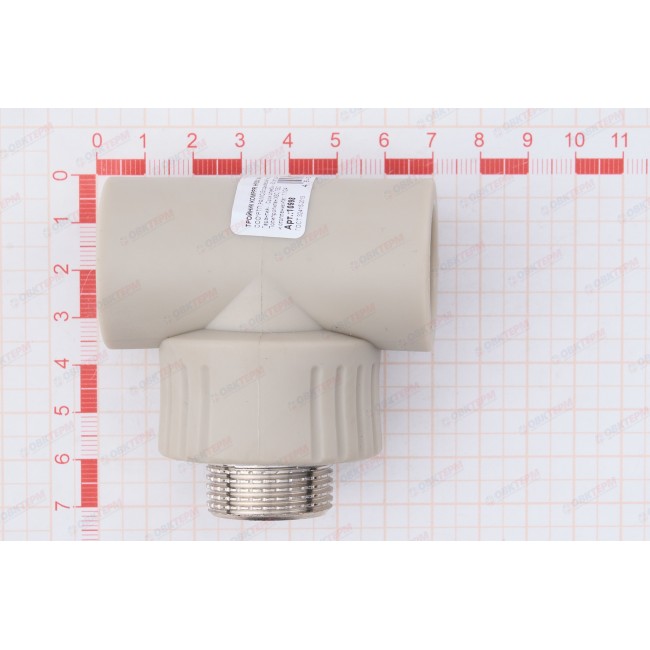 Количество в коробке: 60шт. Количество в упаковке: 15шт. Трехсторонний полипропиленовый фитинг для подсоединения к полипропиленовому трубопроводу компонента инженерной системы с резьбовым подключением. Резьба фитинга – наружная трубная.