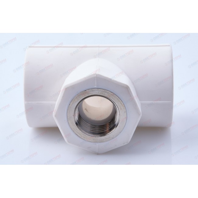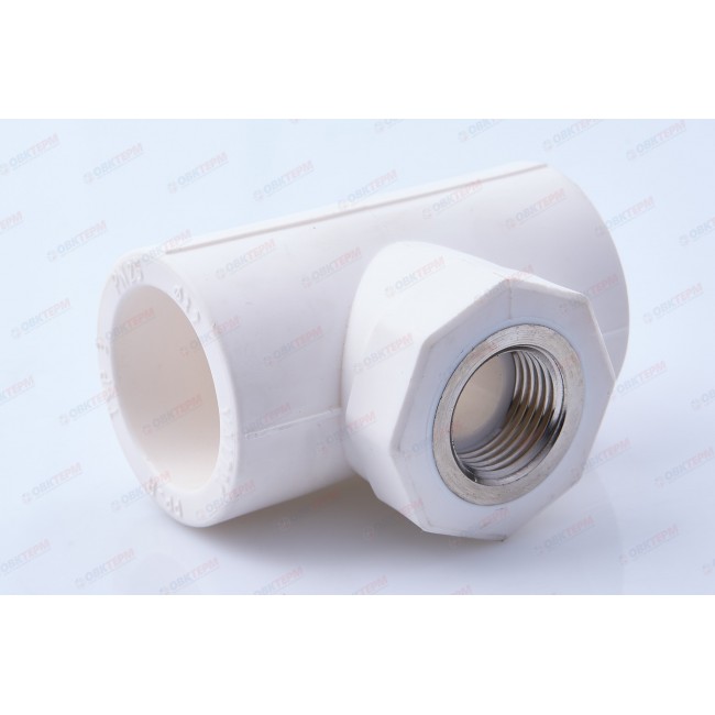 Трехсторонний полипропиленовый фитинг для подсоединения к полипропиленовому трубопроводу компонента инженерной системы с резьбовым подключением. Резьба фитинга – внутренняя трубная по ГОСТу 6357.