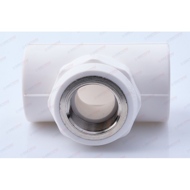 Трехсторонний полипропиленовый фитинг для подсоединения к полипропиленовому трубопроводу компонента инженерной системы с резьбовым подключением. Резьба фитинга – внутренняя трубная по ГОСТу 6357.