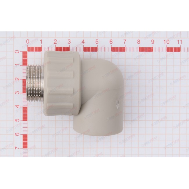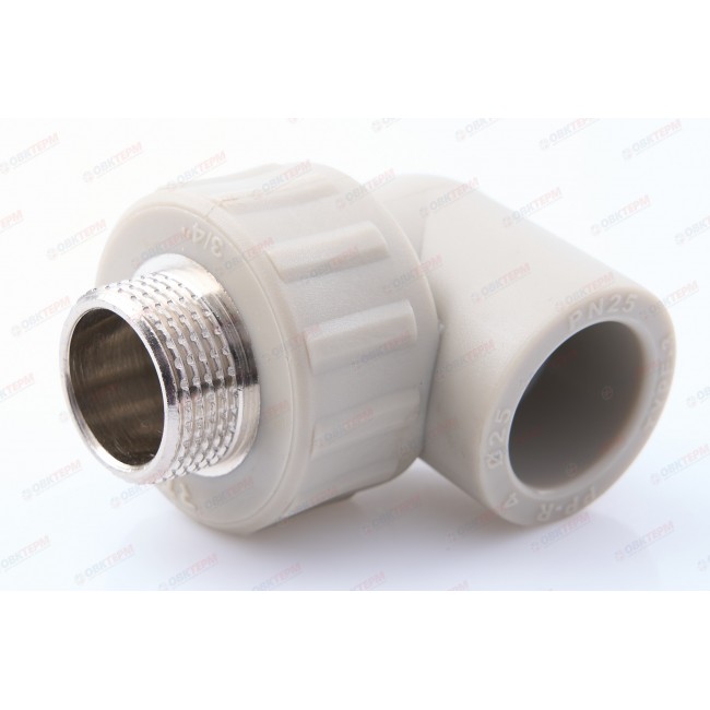 Количество в коробке: 60шт. Количество в упаковке: 20шт. Предназначена для соединения полипропиленовой трубы диаметром 25 мм и фитинга диаметром 3/4" с наружной резьбой. Применяется когда необходимо соединить под прямым углом два неподвижных элемента трубопровода.