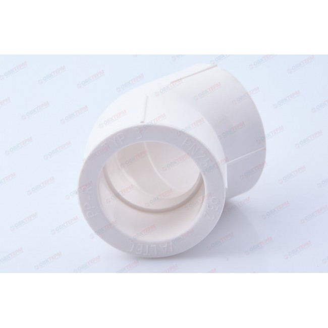 Количество в коробке: 160шт. Количество в упаковке: 5шт. Двухсторонний угловой полипропиленовый фитинг (отвод), позволяющий изменить направление полипропиленового трубопровода на 45°. Монтаж осуществляется методом раструбной сварки.