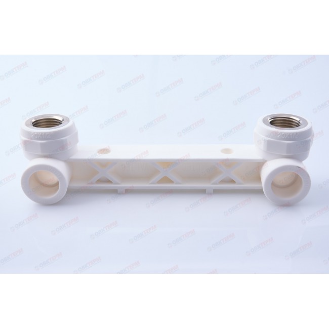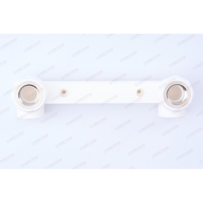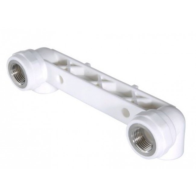 Количество в коробке: 60шт. Количество в упаковке: 5шт. Монтажная планка с угловыми полипропиленовыми фитингами (водорозетками), предназначенными для подключения сантехнического смесителя со стандартным межосевым расстоянием (150 мм) к водопроводу из полипропиленовых труб.