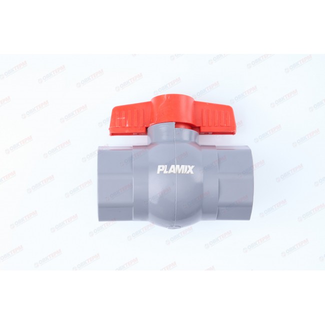 Кран пластиковый шаровый 1 1/2" ВВ серый Plamix