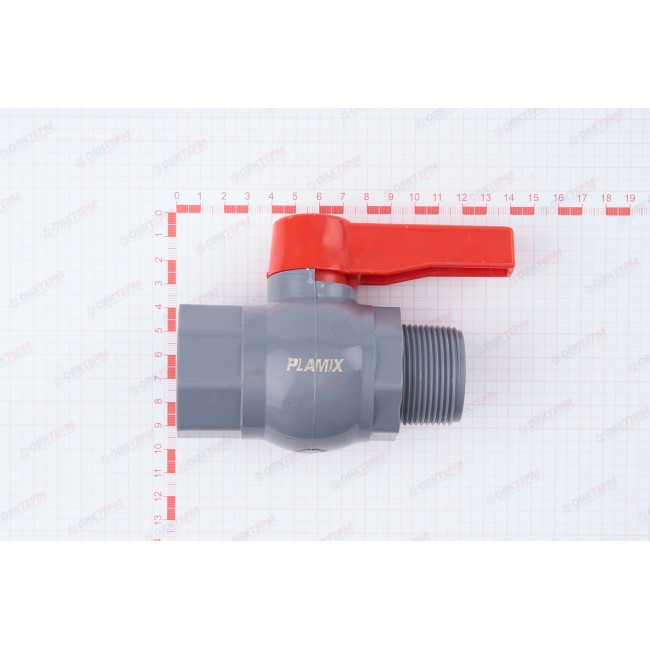 Кран пластиковый шаровый 1 1/4" ВН серый Plamix