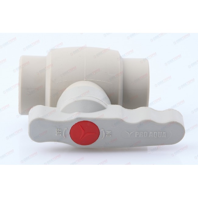 Количество в коробке: 50шт. Количество в упаковке: 1шт. Шаровый кран Pro Aqua из полипропилена (PP-R) предназначен для остановки потока при организации систем внутреннего холодного и горячего водоснабжения и разводки систем центрального отопления с рабочей температурой до + 95 °С.