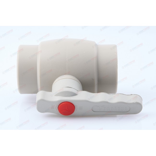 Количество в коробке: 25шт. Количество в упаковке: 1шт. Кран шаровый полипропиленовый применяется для систем водоснабжения и отопления. Методом раструбной сварки осуществляется монтаж с трубами. Шаровый кран имеет латунный запорный не регулируемый узел штока без облегчения. Уплотнение по штоку рукоятки состоит из двух EPDM прокладок, уплотнение шара выполнено из тефлона.