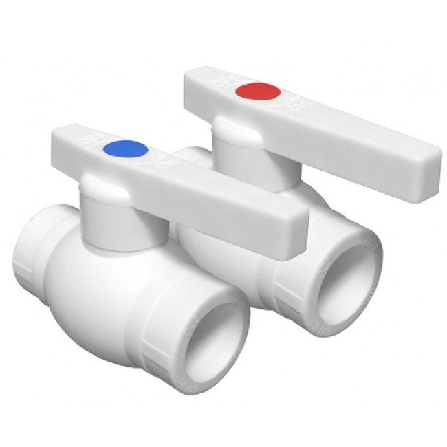 Кран пластиковый шаровый 63 латунный шар белый Valfex