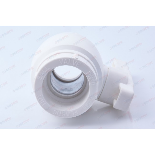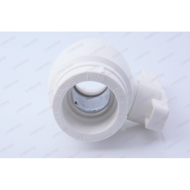 Шаровый кран пластиковый 40 (латунный шар) (белый) (TIM)