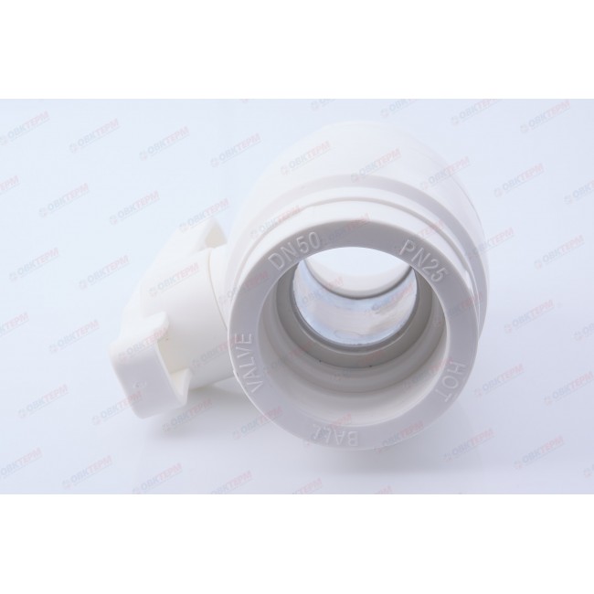 Шаровый кран пластиковый 50 (латунный шар) (белый) (TIM)