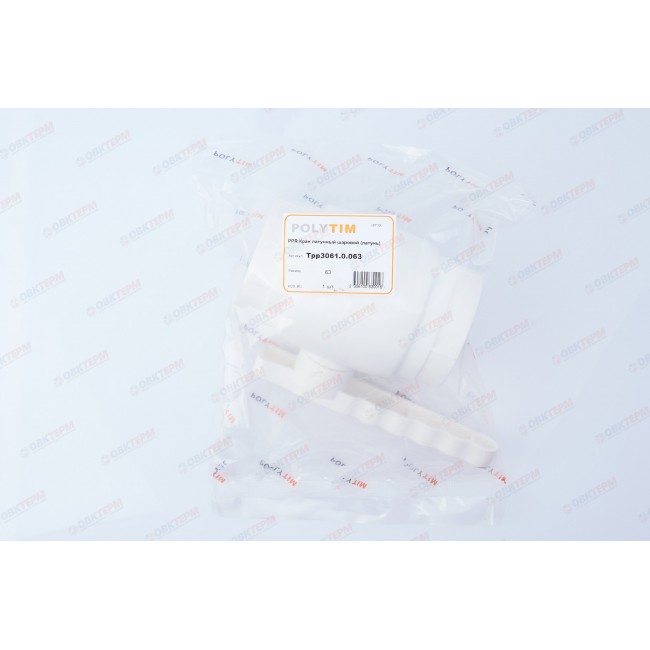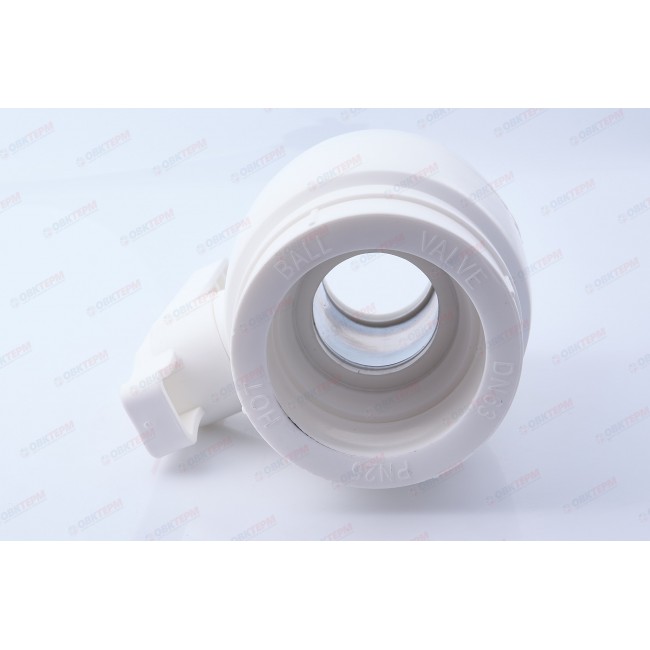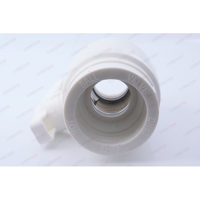 Шаровый кран пластиковый 63 (латунный шар) (белый) (TIM)