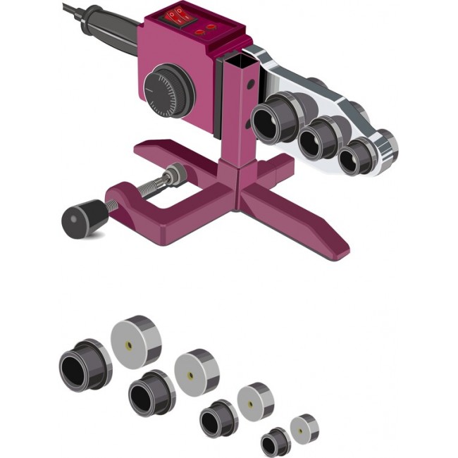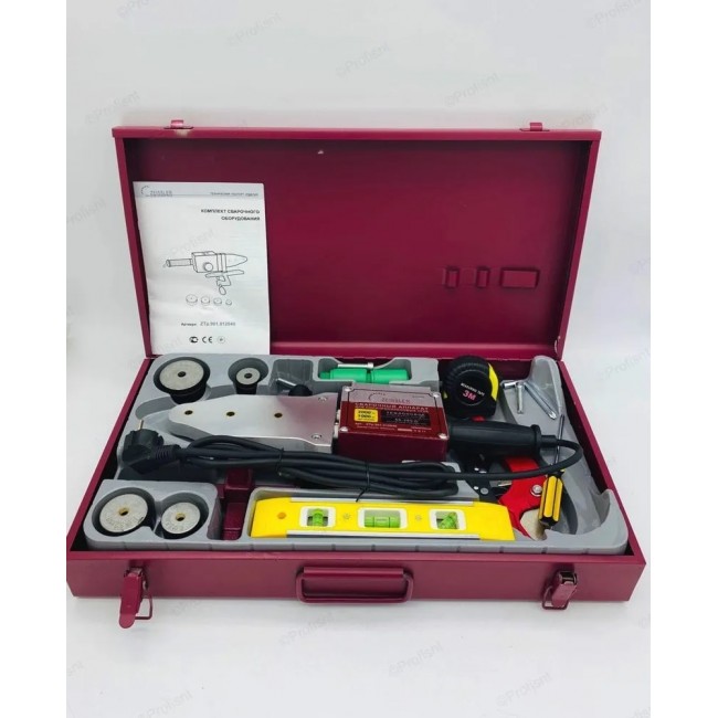 Комплект оборудования предназначен для ручной полифузионной сварки напорных полипропиленовых труб и фитингов. Применяется при монтаже трубопроводных систем различного назначения из полипропиленовых труб наружным диаметром от 20 до 40 мм. Технические характеристики: Рабочая температура нагревательной панели: от 50 до 300 °C; Время нагрева: менее 10 минут; Мощность: 2000 Вт; Напряжение: 220-240 В; Частота: 50-60Гц; 4 тефлоновые насадки (20 мм, 25 мм, 32 мм, 40 мм). Комплектация: Сварочный аппарат(2000 Вт) - 1 шт; Крестовидная подставка из алюминия; Набор насадок 20 -40 мм; Ножницы для резки пластиковых труб; Рулетка 3 м; Уровень и пробки для монтажа водорозеток; Ключ шестигранный и отвертка; Инструмент для установки сварных насадок.