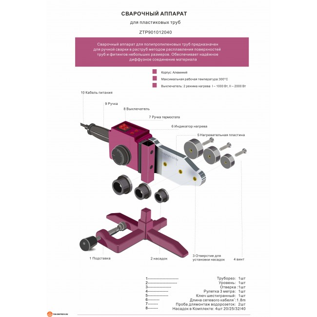Комплект сварочного оборудования 20.25.32.40 мм 2000 Вт ZTp.901.012040 TIM