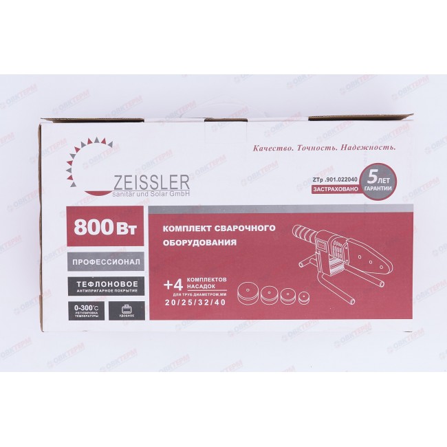 Комплект сварочного оборудования для полипропиленовых труб (4 насадки) 800 Вт, с цифровым дисплеем Zeissler арт. ZTp.901.022040 предназначен для ручной сварки в раструб полипропиленовых, PE, PP, PB и PVDF труб, методом расплавления поверхностей труб и фитингов небольших размеров.