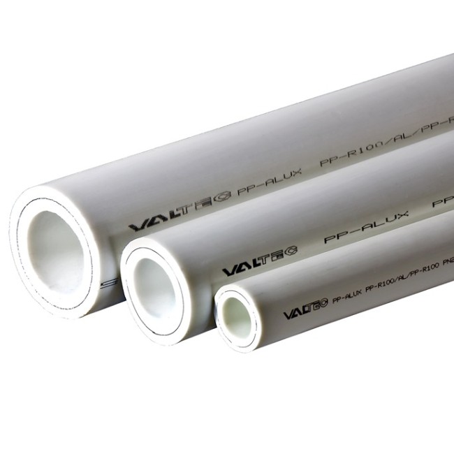 Цена за метр. Труба полипропиленовая армированная алюминием PP ALUX PN 25 соответствует 5-му классу эксплуатации по ГОСТ 32415-2013. Область применения – холодное, горячее водоснабжение, низко-, высокотемпературное отопление, технологические установки с рабочей средой, неагрессивной к материалам системы. Неперфорированный алюминиевый слой полностью исключает проникновение кислорода через стенку трубы, резко снижает температурное удлинение трубопровода, а также увеличивает прочность трубы, так как имеет сплошной продольный сварной шов. Сварка соединений не требует зачистки фольги (достаточно торцевания). Номинальное давление (транспортировка холодной воды) – 25 бар. Диапазон наружных диаметров предлагаемых пластиковых труб – 20–90 мм.