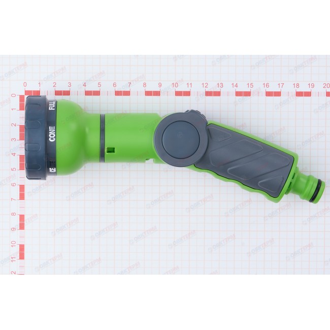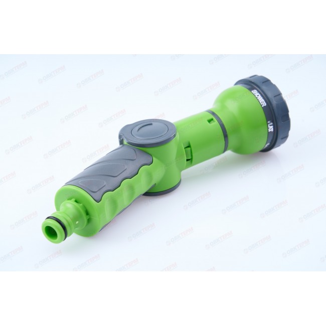 Количество в коробке: 12шт. Количество в упаковке: 1шт. Пистолет металлический многофункциональный крепится на конце садового шланга и служит для превращения водяной струи из мощного и жесткого напора в различные типы струи в зависимости от желаемого. С помощью пистолета для полива легко визуально отслеживать направление полива и регулировать дозировку воды – для прекращения подачи воды достаточно отпустить спусковой крючок. Обеспечивается плавная регулировка струи от жесткой точечной до мягкого тумана.