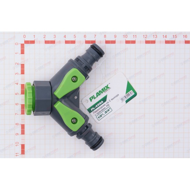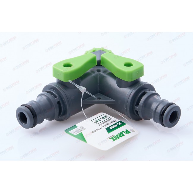 Адаптер-тройник 1/2" РВ с 2-мя кранами и переходом на 3/4" РВ ABS PL-456A Plamix
