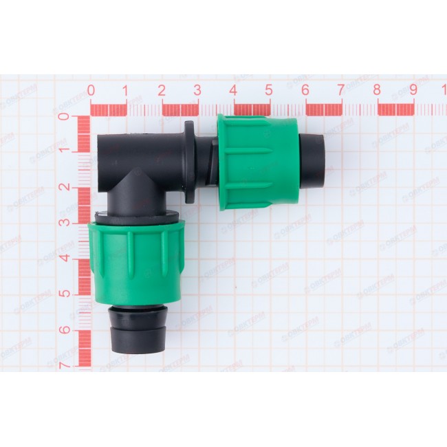 Количество в коробке: 600шт. Количество в упаковке: 50шт. Колено (угол) зажимное для капельной ленты. Элемент используется для изменения направления тока воды по поливной ленте под углом в 90°. Используется колено обычно на приусадебных участках. Позволяет организовать последовательный полив при помощи капельной ленты любой, а не только прямой конфигурации. Колено необходимо при поливе горок, клумб, живой изгороди, можно использовать при поливе овощей. Фиксация производится при помощи зажимной гайки, после того как лента до упора одета на конус.
