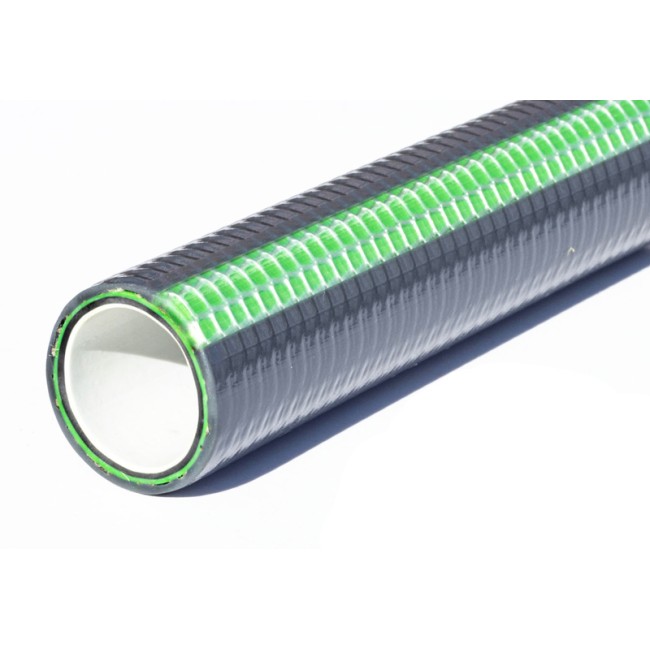 Пятислойный, армированный высокопрочной синтетической нитью шланг. Внутренний слой ПВХ непрозрачный, белый, обладает бактерецидными свойствами и препятствует образованию водорослей внутри тела шланга и вредных микроорганизмов. Наружный ПВХ слой прозрачный, имеет, специальные защитные добавки от воздействия внешних факторов, таких как ультрафиолетовое излучение, истирание. Между внутренним и наружным ПВХ слоями расположены два дополнительных слоя, которые предотвращают проникновение солнечных лучей и создают дополнительное усиление телу шланга, а так же, слой текстильного плетения, который предотвращает скручивание и заломы шланга.
