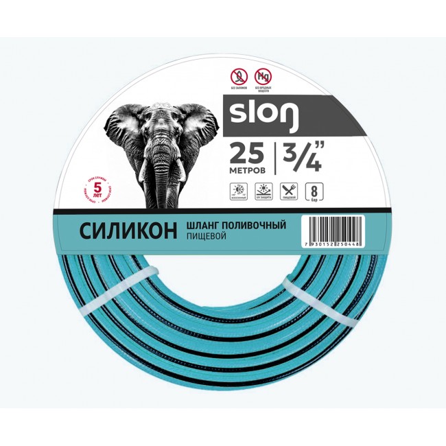 Шланг поливочный ПВХ "SLON" силикон бирюзовый с черной полосой армир. 3-х слойный 3/4 (25 м)