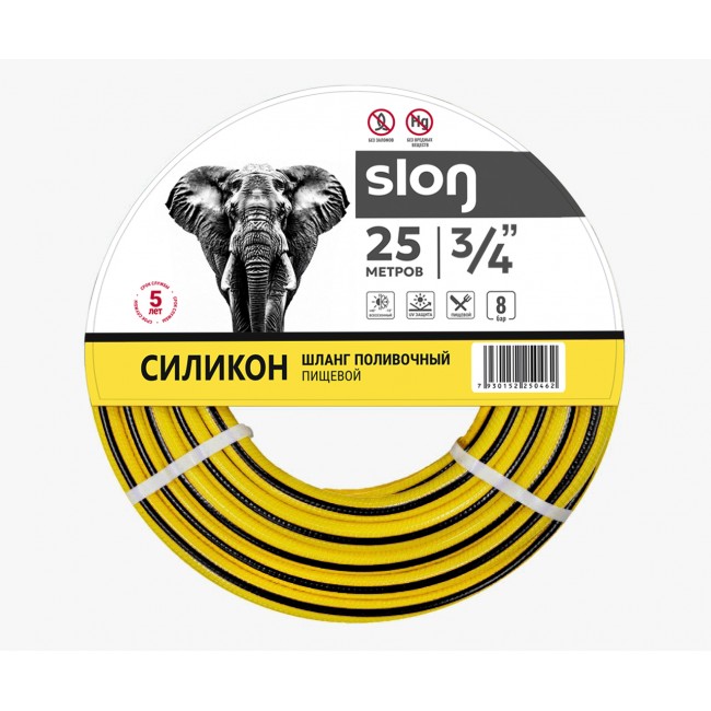 Шланг поливочный ПВХ "SLON" силикон желтый с черной полосой армир. 3-х слойный 3/4 (25 м)