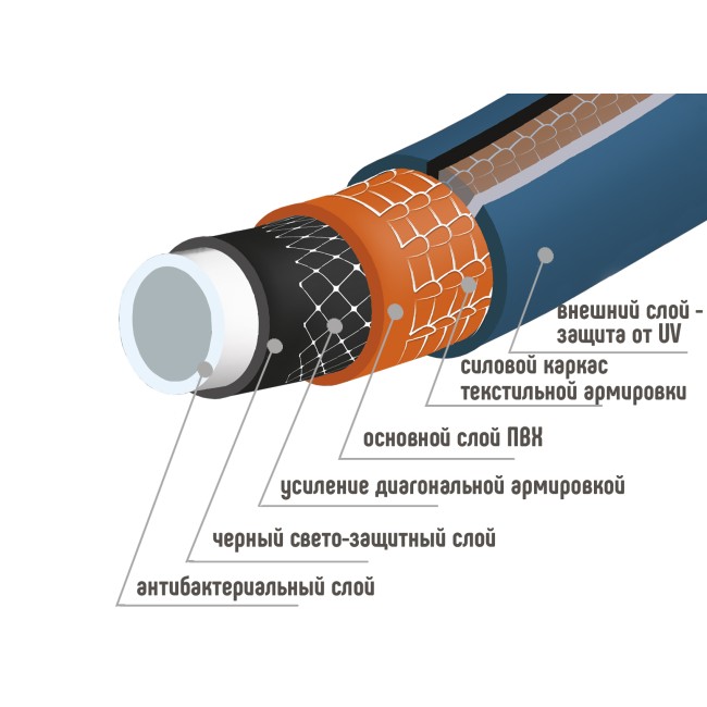 Наш уникальный 6-ти слойный шланг ТЭП работает при температурах от - 50 до + 90 градусов, превосходя по характеристикам любой шланг ПВХ!