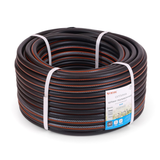 Морозостойкие поливочные шланги Жук серии Оптима — недорогое решение для организации полива на садовом участке. Эти шланги обладают всеми необходимыми характеристиками: высоким рабочим давлением, устойчивостью к скручиванию и перегибам, выдающимися параметрами морозостойкости (-30°C).