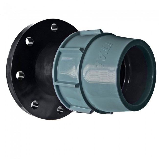 Фланец ПНД (прижимной) – это обычный плоский приварной фланец с расточенным внутренним диаметром для посадки на ПЭ втулку (бурт ПНД). Внутренний диаметр фланца должен быть больше внешнего диаметра трубы. На поверхности фланца имеются специальные болтовые отверстия для крепежа.