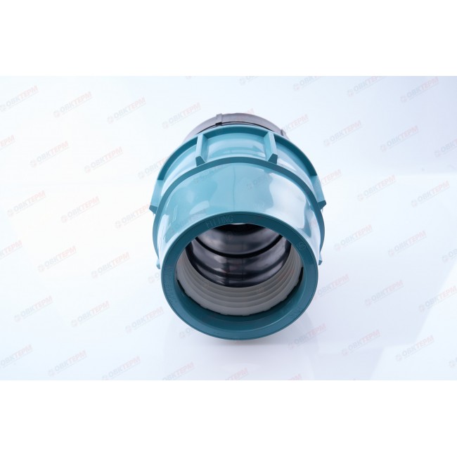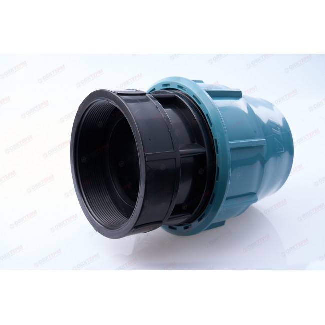 Компрессионная муфта 90х4 внутренняя резьба применяется при строительстве трубопроводных систем из полиэтиленовых ПНД труб в местах, где нужно перейти на другой фитинг или металлическую трубу с наружной трубной резьбой.