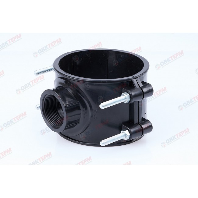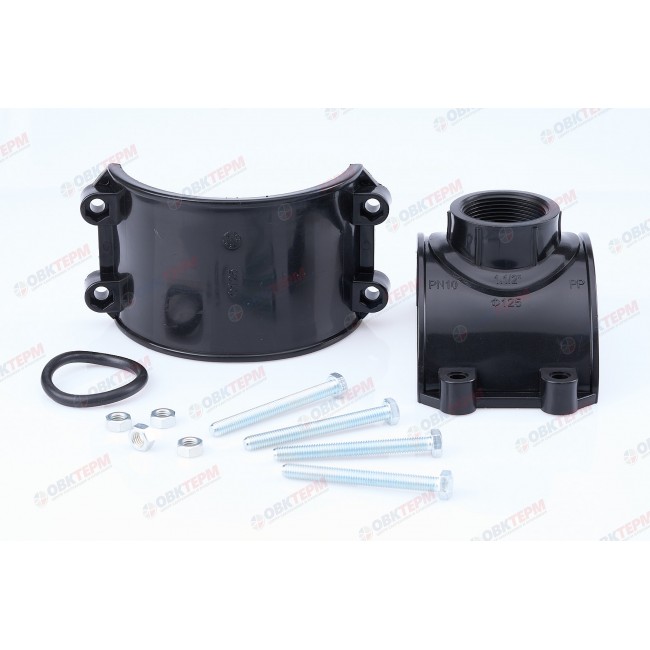 Седелка на трубу 125х1 1/2″ предназначена для устройства ответвления второстепенного ответвления от основного трубопровода из полиэтиленовой ПНД трубы, транспортирующей холодную питьевую или техническую воду. Седелка на трубу имеет простейшую конструкцию, заключающую в себе две полукруглых детали, обжимающие трубу диаметром 125 мм с двух сторон. Одна из частей имеет резьбовой выход на 1 1/2″.
