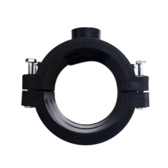 Седелка на трубу 140х1 1/2″ предназначена для устройства ответвления второстепенного ответвления от основного трубопровода из полиэтиленовой ПНД трубы, транспортирующей холодную питьевую или техническую воду. Седелка на трубу имеет простейшую конструкцию, заключающую в себе две полукруглых детали, обжимающие трубу диаметром 140 мм с двух сторон. Одна из частей имеет резьбовой выход на 1 1/2″.
